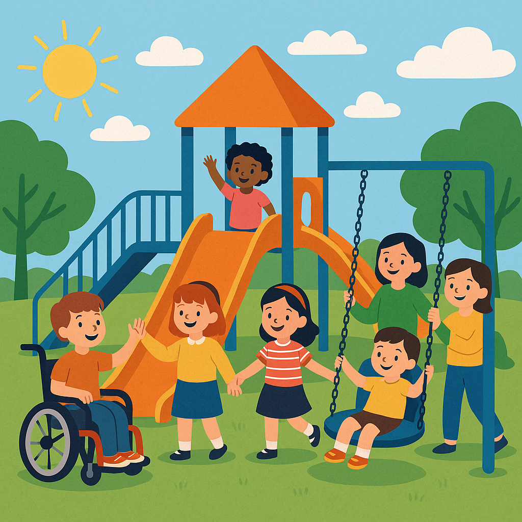 통합 놀이터는 단순히 장애 아동을 위한 공간이 아니라, 모든 아이가 함께 성장하고 다양성을 배우는 교육의 장입니다.